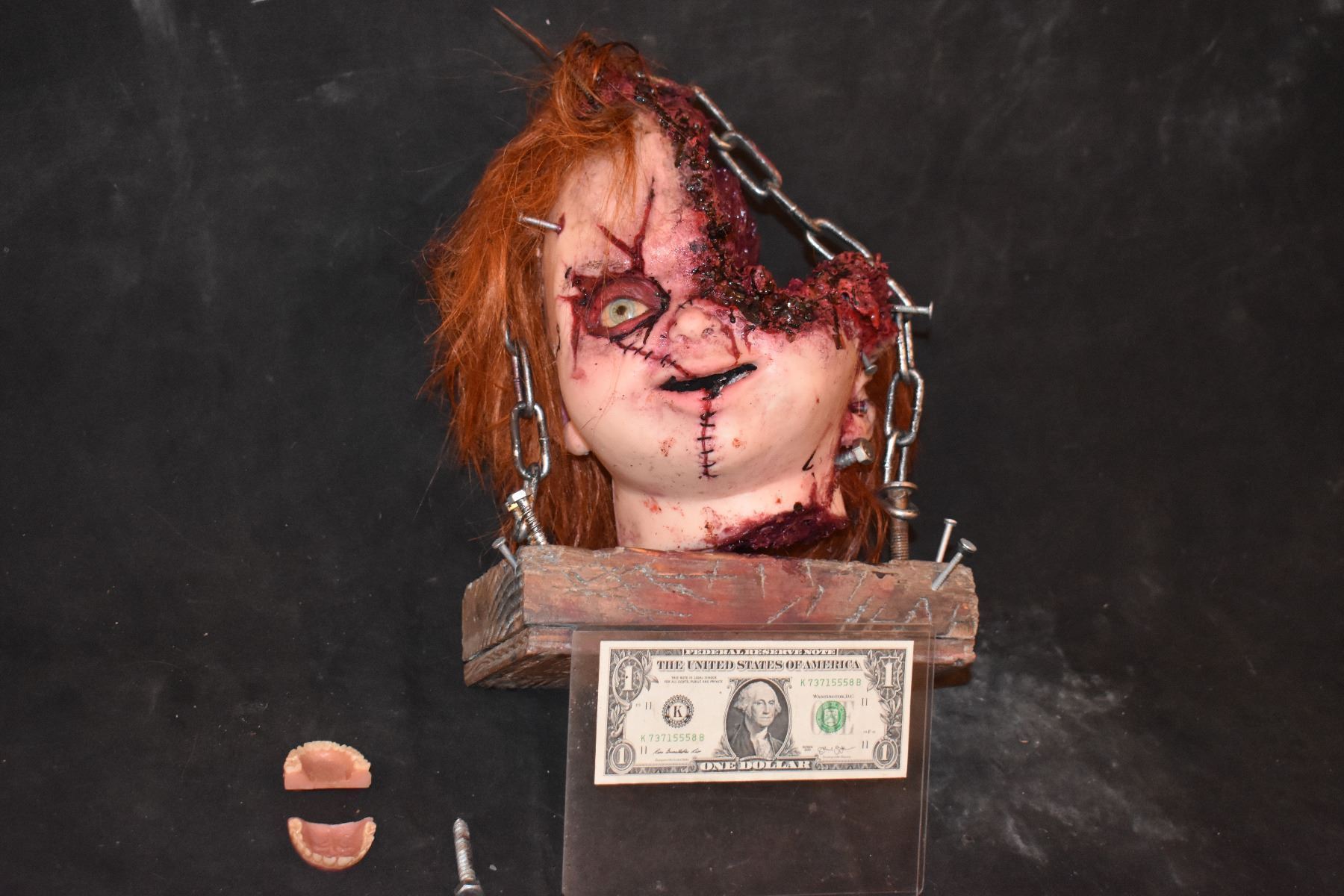 This is the SCREEN USED & MATCHED COMPLETE SEVERED CHUCKY HEAD PUPPET from CULT OF CHUCKY! This is the final incarnation of CHUCKY as it pertains to the original timeline and cannon. Though only a Head, this is a complete CHUCKY! Scenes with this make the movie!