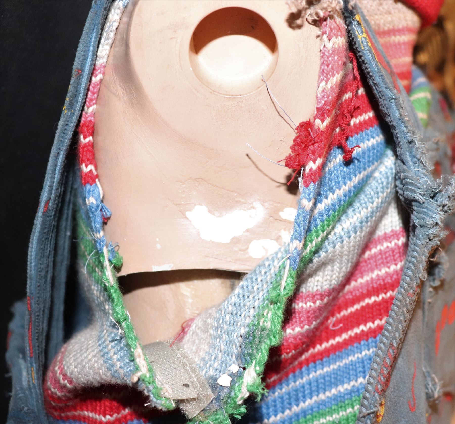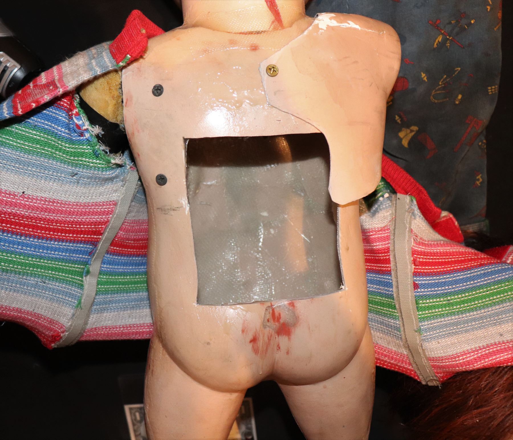 1] The resin hollow body is CHUCKY, [As apposed to the solid foam doll with the scar].