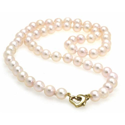 This beautiful Necklace features AKOYA CULTURED PEARLS 7.00mm - 6.5mm in size. The Necklace is 18 inches in length, and it has a beautiful 14k Yellow Gold HEART shaped Clasp.
