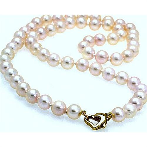 This beautiful Necklace features AKOYA CULTURED PEARLS 7.00mm - 6.5mm in size. The Necklace is 18 inches in length, and it has a beautiful 14k Yellow Gold HEART shaped Clasp.