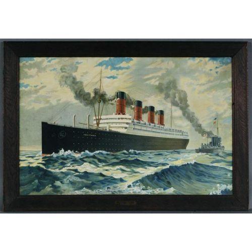 CUNARD LINE SIGN, Aquatania, 31"x45" overall, circa 1920, CONDITION REPORT: foxing and toning.