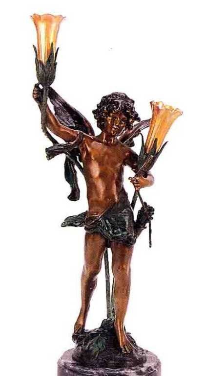 "CUPID" BRONZE SCULPTURE LAMP - AFTER A. MOREAU - BEAUTIFUL COLOR PATINA - MOUNTED ON A FINE ITALIAN MARBLE BASE - BEAUTIFULLY DETAILED - SIGNED - MINT CONDITION -316"H X 10"W - LOST WAX CAST BRONZE