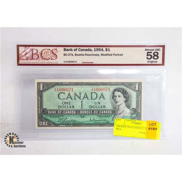 GRADED 1954 CANADA 1 DOLLAR BILL