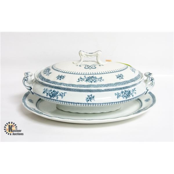ANTIQUE SHEWSBURY CHINA SERVING DISH W LID