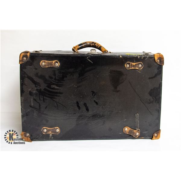 ANTIQUE BLACK LEATHER TRAVEL SUITCASE