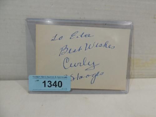 CURLY 3 STOOGES CUT SIGNATURE AUTOGRAPH NO COA. AS SHOWN. VIEW PICTURE FOR DETAIL. PLEASE BE ADVISED, AND INFORMED REGARDING SIGNATURES OR AUTOGRAPHS THAT WE SELL AT AUCTION: WE ARE NOT AUTHENTICATORS, AND WE DO NOT AUTHENTICATE, OR VALIDATE ANY AUTOGRAPHS OR SIGNATURES THAT WE OFFER AT AUCTION. SOME AUTOGRAPHS OR SIGNATURES MAY COME WITH AN AUTHENTICATION FROM ANY ONE OF LITERALLY HUNDREDS OF AUTHENTICATORS ACROSS THE COUNTRY, AND AROUND THE WORLD. WE DO NOT ENDORSE ANY AUTHENTICATOR, NOR DO WE GUARANTEE THAT ANY AUTOGRAPH OR SIGNATURE IS AUTHENTIC, OR THAT IT WILL PASS AUTHENTICATION BY ANY AUTHENTICATOR. ALL AUTOGRAPHS OR SIGNATURES ARE SOLD