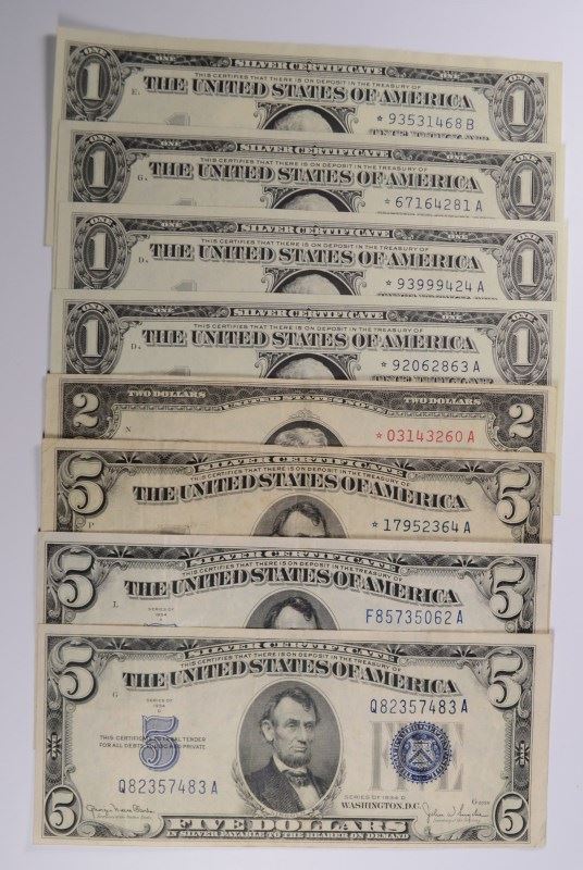 1953B $2.00 STAR NOTE; 1934D XF $5.00, 1934A $5.00 XF. EST 100.00-120.00