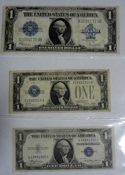 INCLUDES:1923 SILVER CERT. LARGE SIZE, 1928 "FUNNY BACK" SILVER CERET. 1935A HAWAII SILVER CERT. (3) $1.00 SILVER CERTS. STAR NOTES, AND (3) $1.00 SILVER CERTS. ALL IN VERY NICE COLLECTABLE CONDITION, EST. $75.00 TO $85.00