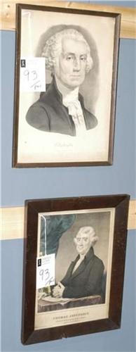 CURRIER & IVES LITHOGRAPHS, George Washington and Thomas Jefferson (N. Currier), each about 14"x10" 19th century, CONDITION: toning, PACKING AND SHIPPING BY FAIRFIELD AUCTION WITHIN CONTINENTAL USA (excluding insurance) $40,