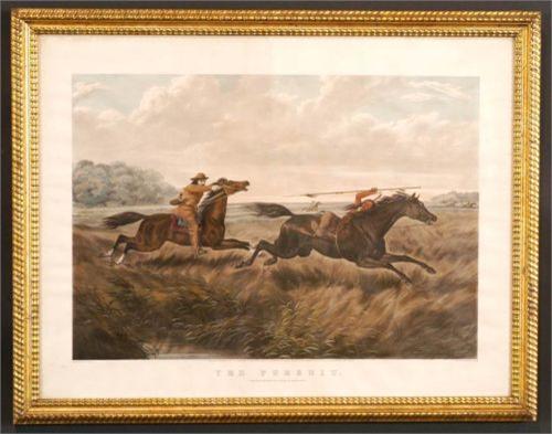 CURRIER & IVES LITHOGRAPH, "The Pursuit", 22 1/2"x29 1/2" sight, after A.F. Tait, condition: excellent with strong colors, SHIPPING: See recommended third party shippers. This item can't be packed or shipped by seller.