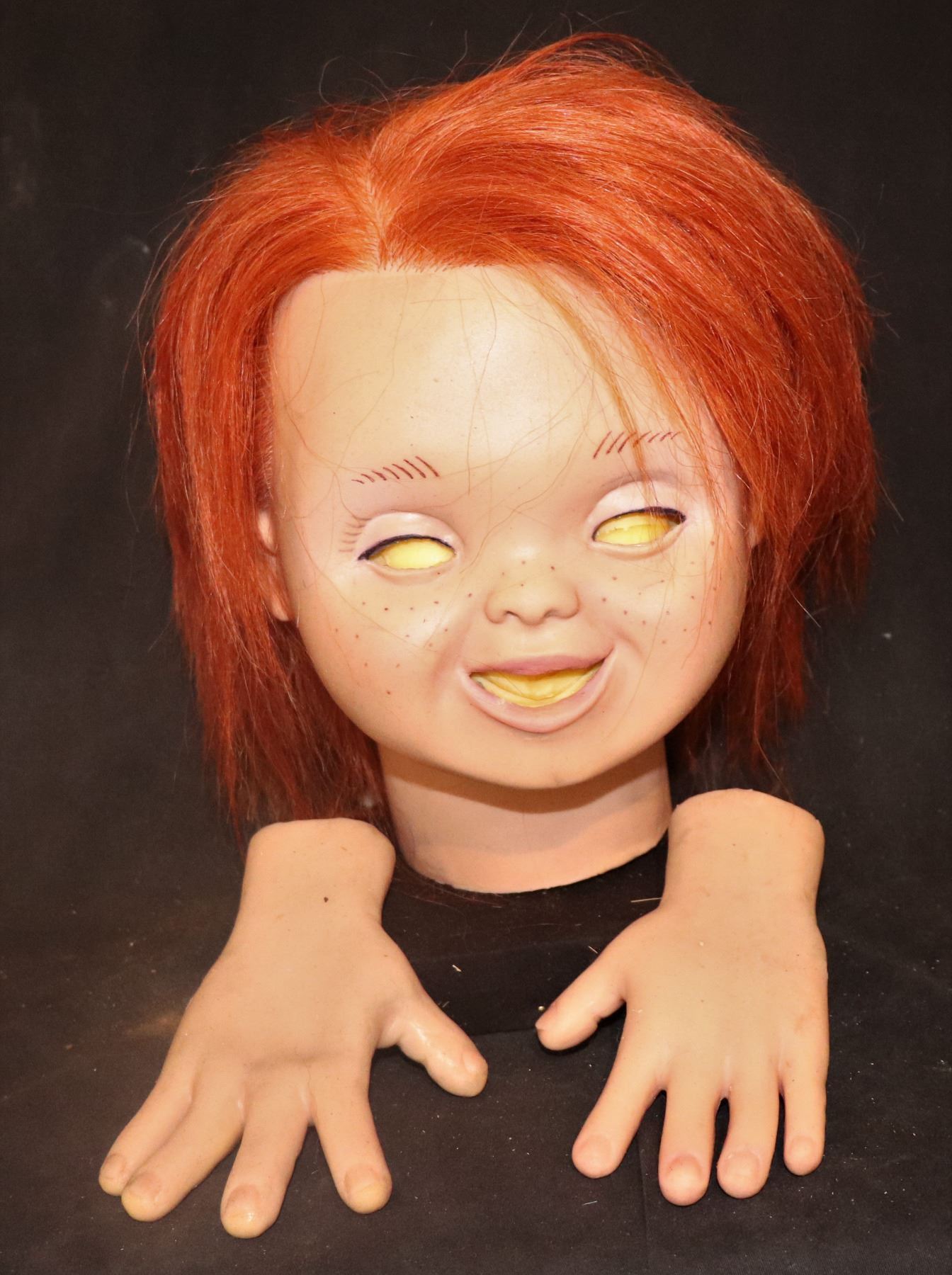 1] The SCREEN MATCHED CURSE of CHUCKY HEAD. This is OOAK as the only HERO head skin made like this. This is the unscarred head skin you see on the HERO Animatronic Puppet in the beginning. This is the exact head you see in the Screen Shots.