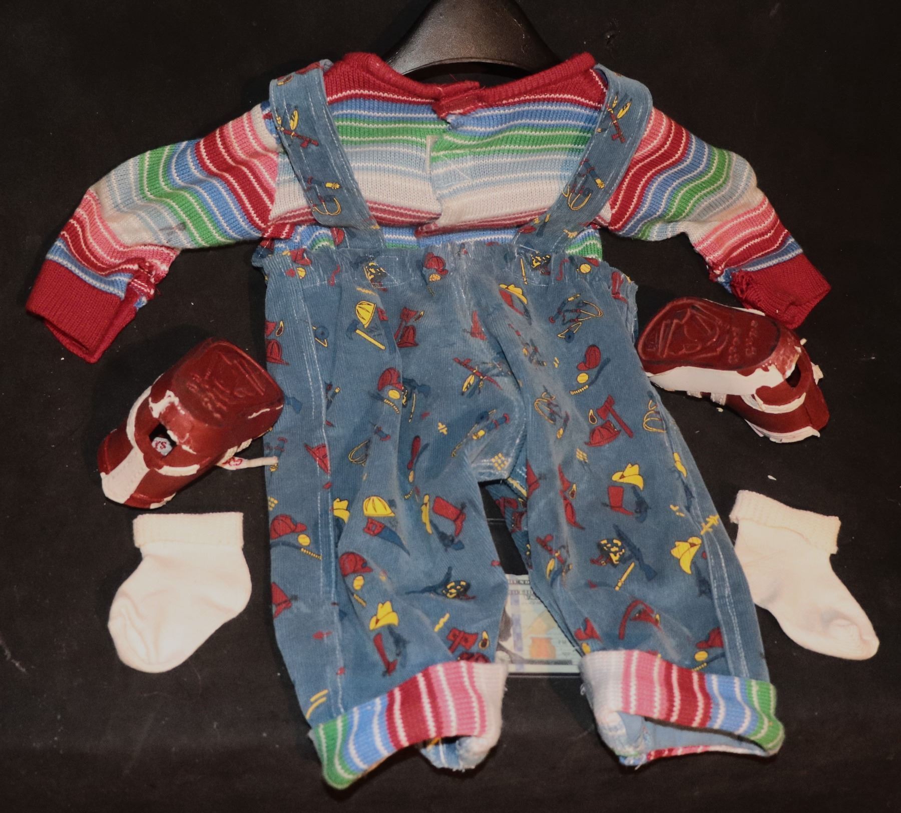 CURSE OF CHUCKY COMPLETE HERO PUPPET WORN WARDROBE SCREEN MATCHED WITH SEED SHOES & SOCKS!