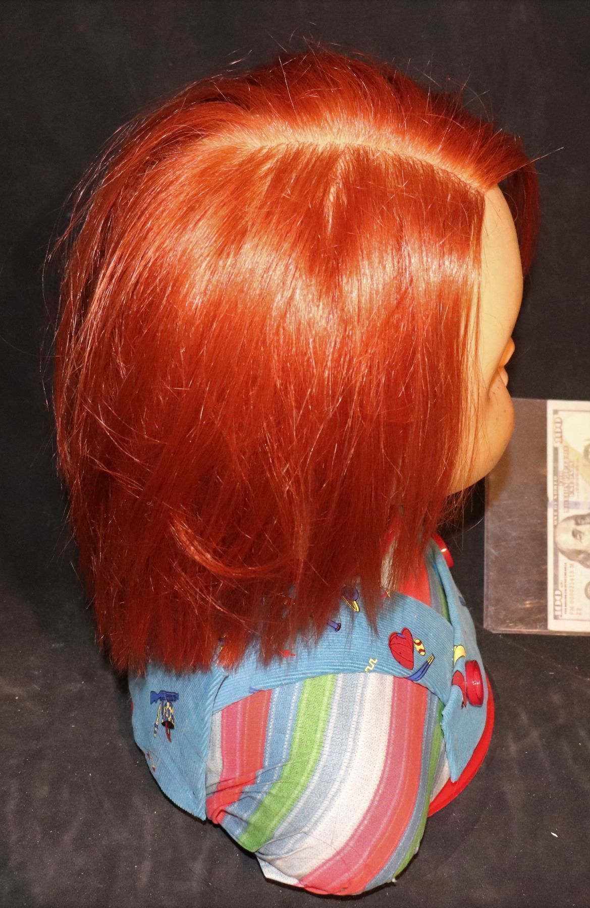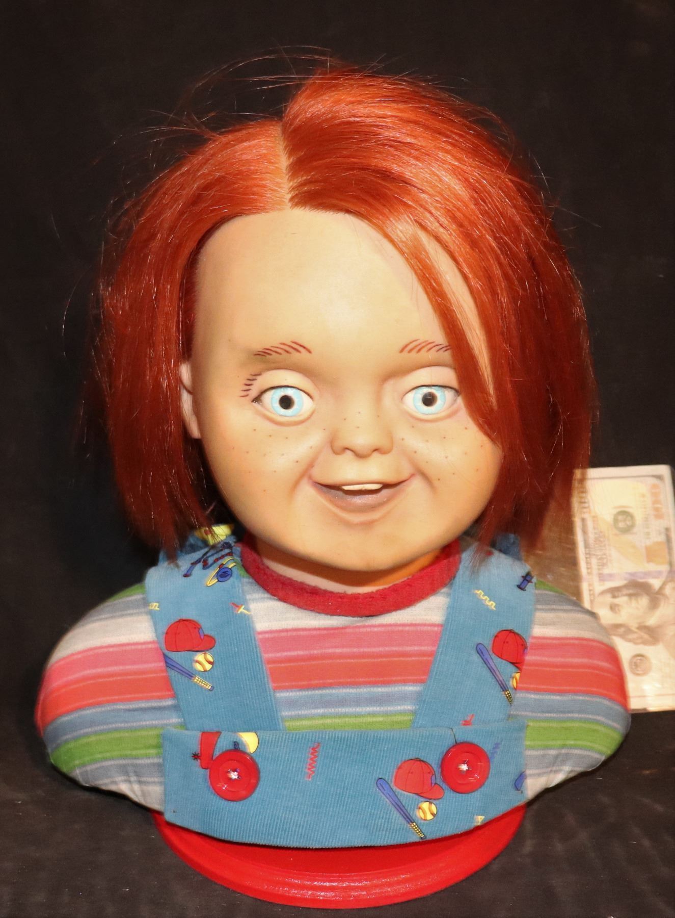 CURSE OF CHUCKY SCREEN USED GOOD GUY HEAD SILICONE ON CUSTOM DISPLAY BUST!