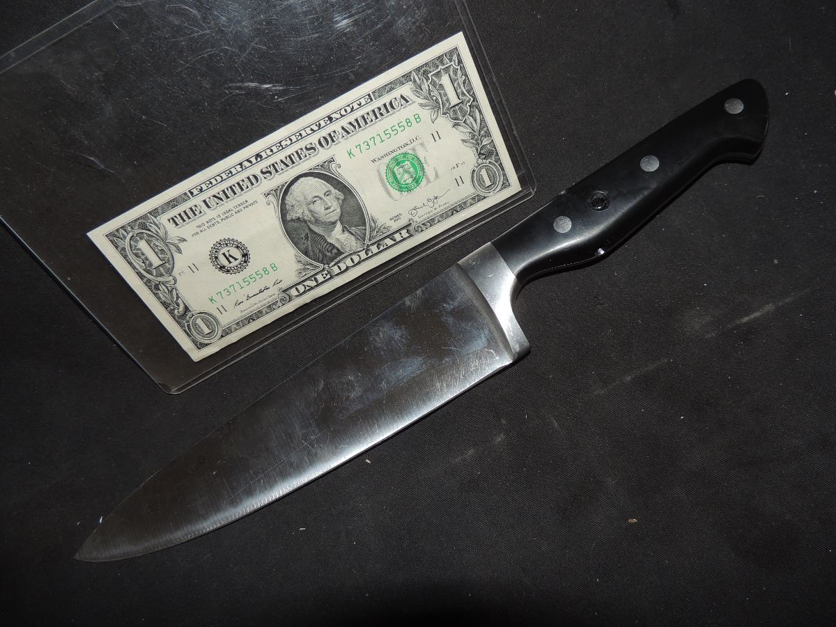 This is the Screen Used Hero metal knife Chucky uses to stab the carpet in the now infamous Radio Shack commercial Entitled The 80's Called, and They Want Their Store Back. You see the 2 holes drilled into the handle to bolt it to the puppet.