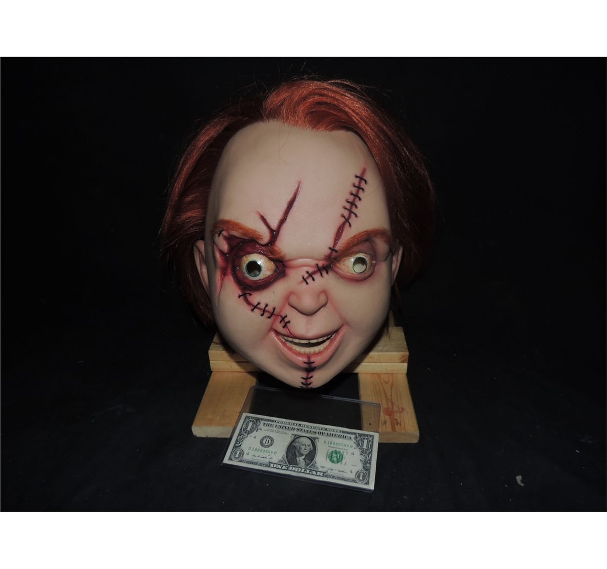 This is the complete silicone full head actor worn mask from SEED OF CHUCKY. It was then used in CURSE OF CHUCKY, but was CGI'd over in post production.