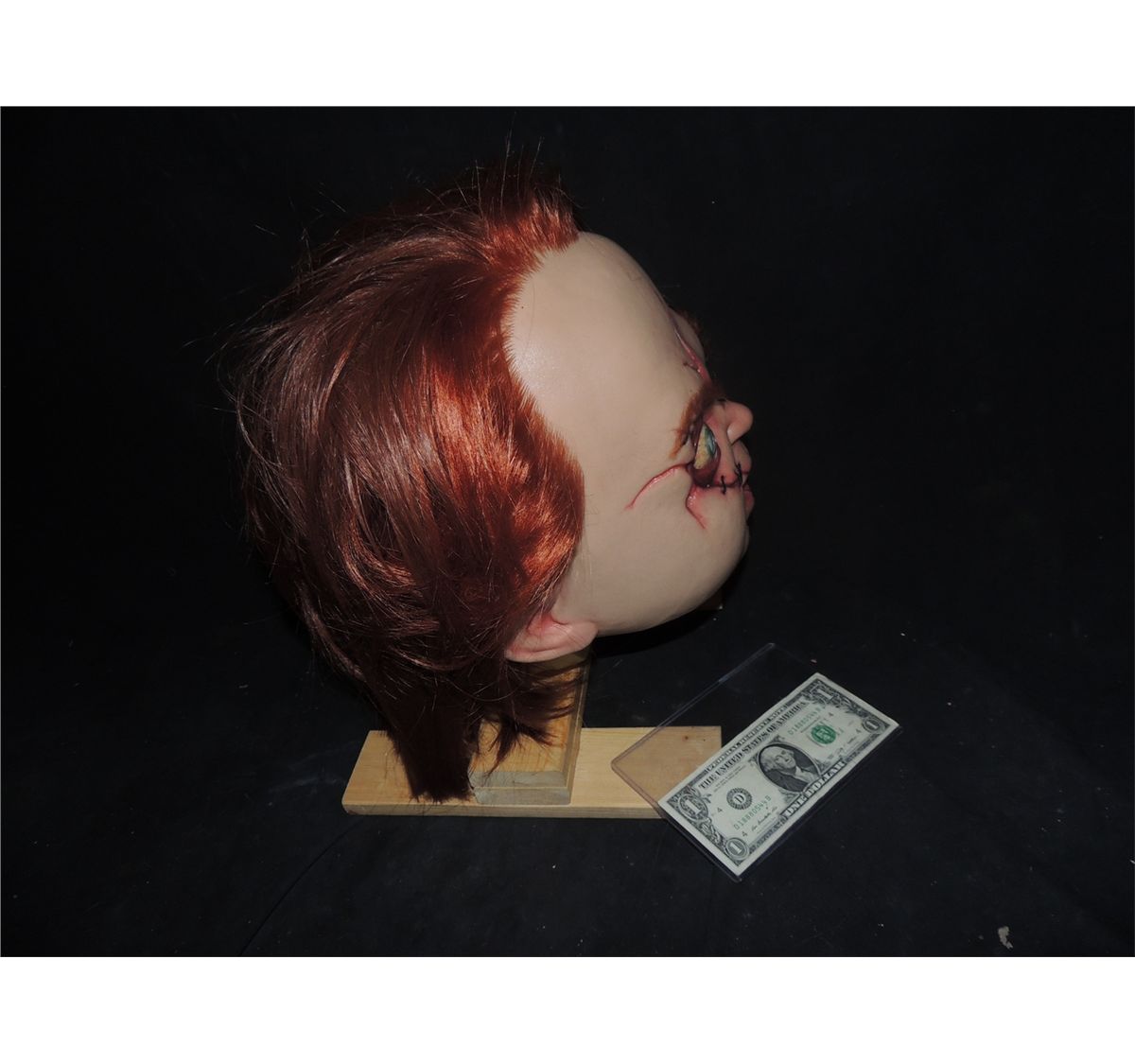 This is the complete silicone full head actor worn mask from SEED OF CHUCKY. It was then used in CURSE OF CHUCKY, but was CGI'd over in post production.