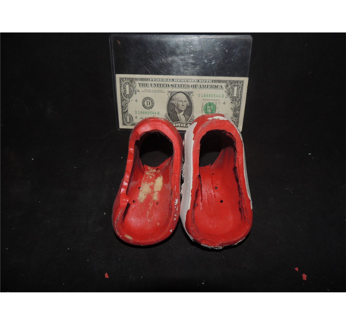 This is a screen used left shoe with a unused right to have a matched pair. Both have had the soles cut away.