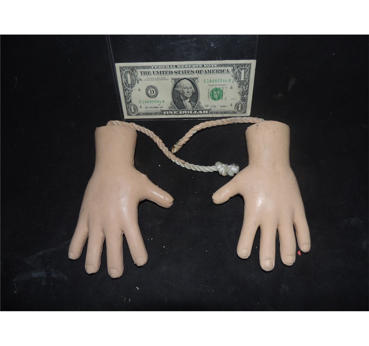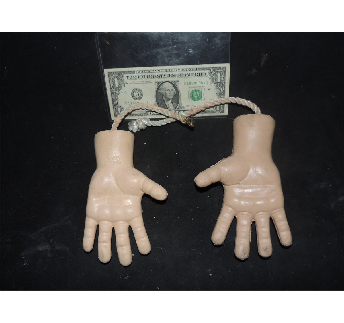 Matched pair of solid silicone Good Guy doll hands with rope armatures. Production made from CURSE OF CHUCKY.