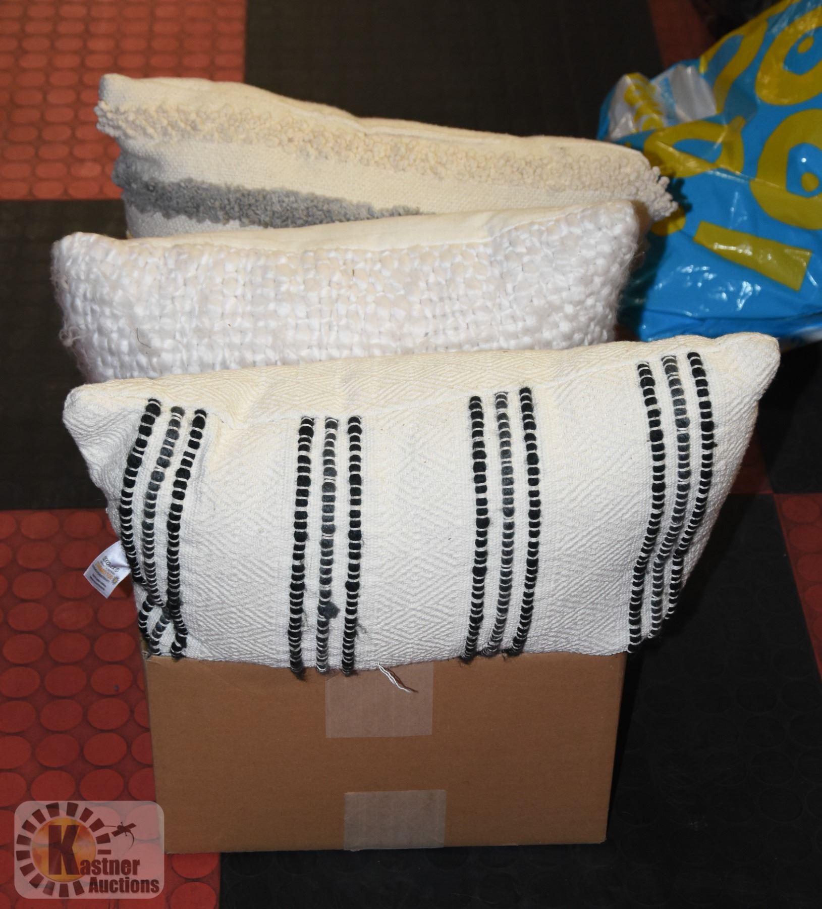 CUSHIONS THREE CUSHIONS NEVER USED WHT,GREY,CREAM