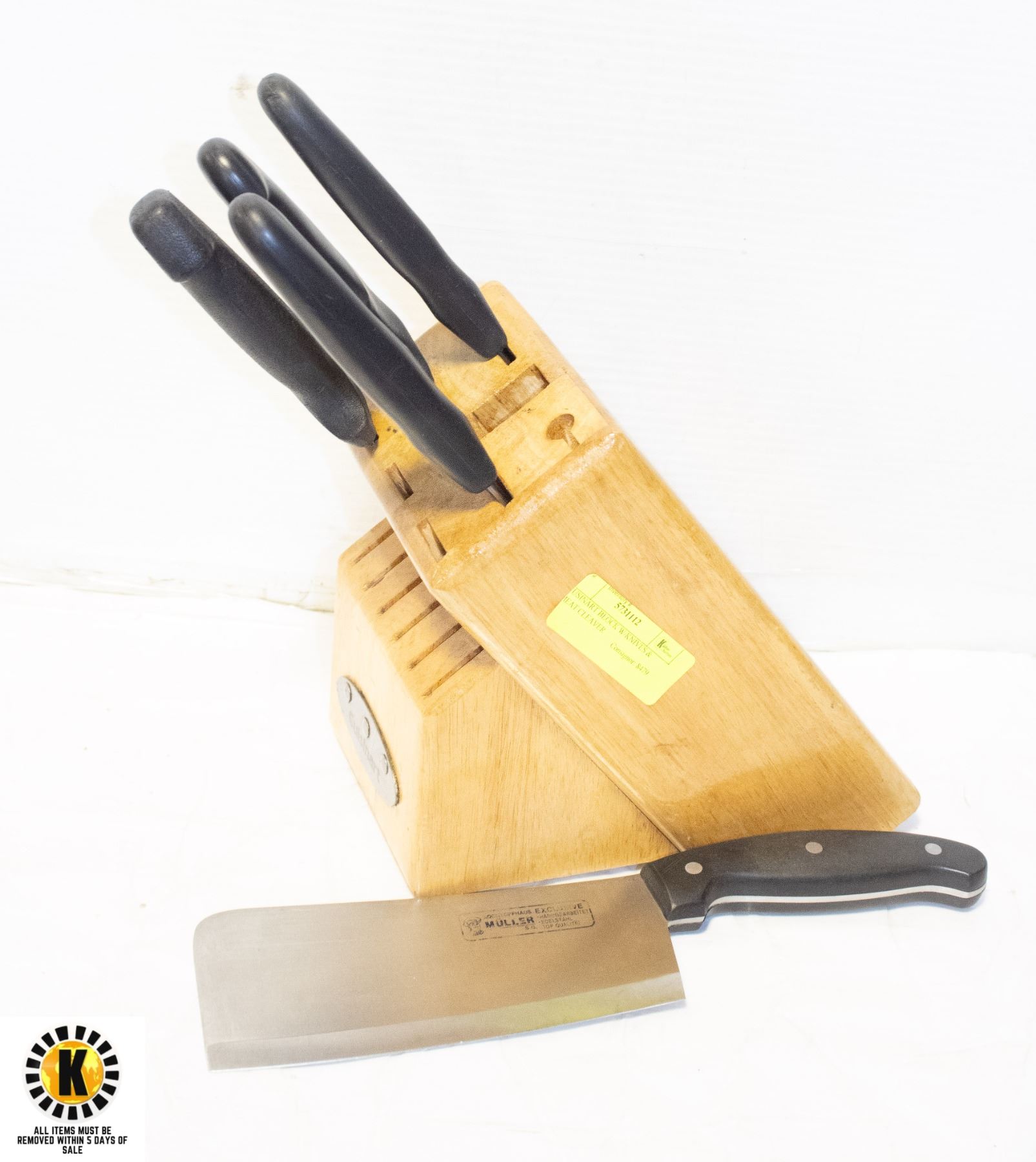 CUSINART BLOCK W/KNIVES & MEAT CLEAVER