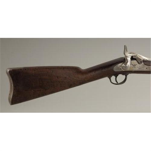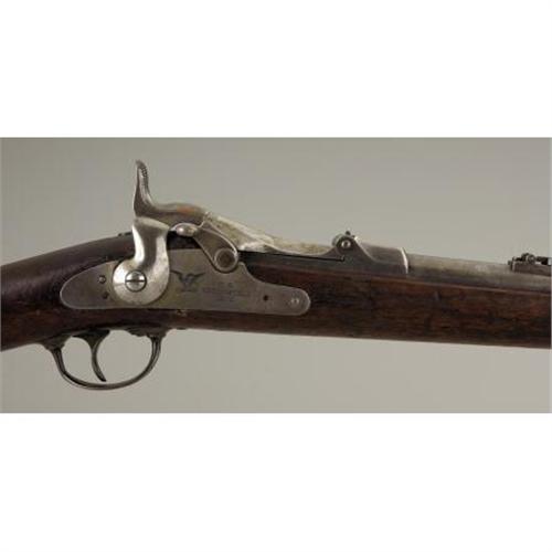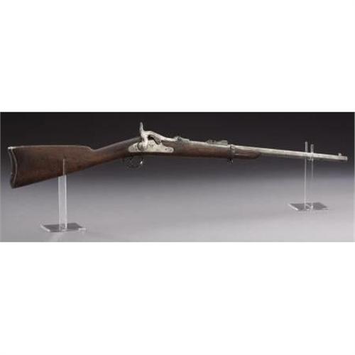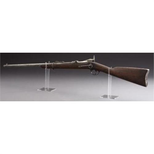 <B>CUSTER ERA U.S. SPRINGFILED 'TRAPDOOR' SADDLE RING CARBINE, MODEL 1873</B></I> - Serial number 21028, .45-70 calibre. Circa early 1870s. All features on this carbine are correct for the serial number range, with the exception of the breach release lever. If you want to own a "real" Custer era gun, this is it.<BR><B><BR> Condition:</B></I>The barrel and butt plate look like they may have been cleaned a bit a long time ago. They are starting to age back nicely. Trigger guard and front barrel band and receiver are dark with age. The lock plate, hammer and breach block are bright. Wood looks like you'd expect on a frontier used carbine. Cartouche visible on bottom on stock behind trigger guard. No visible cartouche on wrist. 1st Model Trapdoors have always been highly regarded by collectors. It's really difficult to find one as straight as this one. “9 N.G.C.” is stamped on top of the butt plate.<BR><BR><b>Shipping:</b> Bats, Clubs, Sticks, Swords, Rif (<a target="_blank" href="http://www.heritageauctions.com/common/shipping.php">view shipping information</a>)