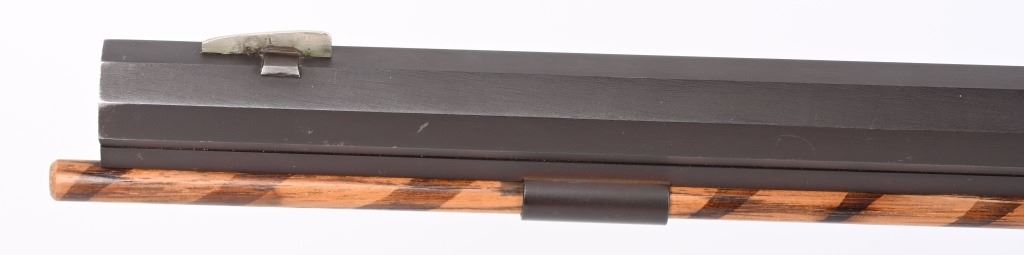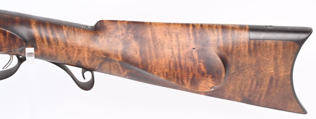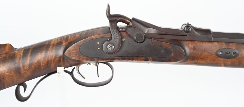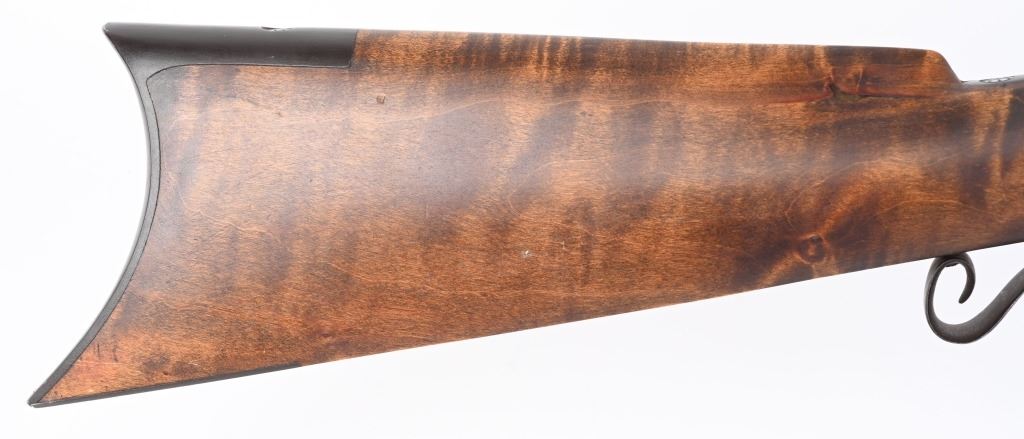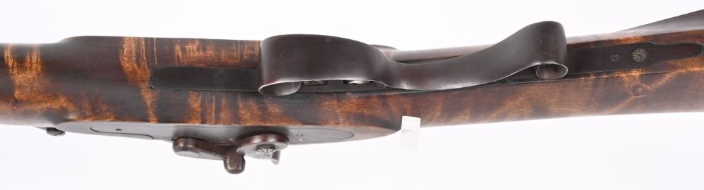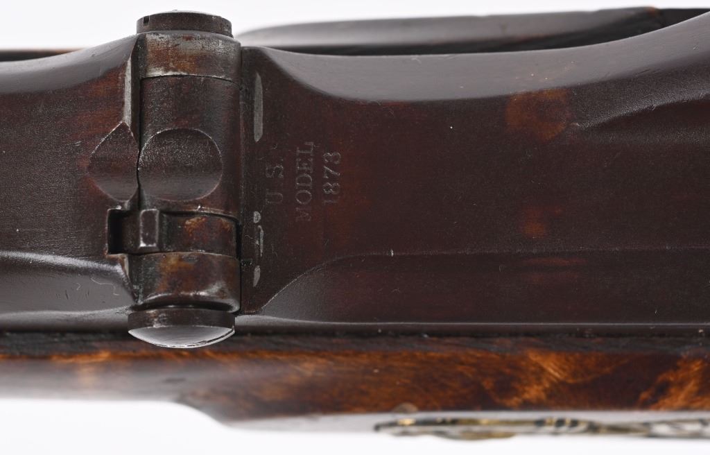 SERIAL NUMBER 48771 BARREL 28" CALIBER 45-70 GOV'T MANUFACTURED CIRCA 1880. Custom produced from an antique Model 1873 Trapdoor Springfield action with the addition of a St Louis Hawken pattern 1/2 stock with iron furniture and double set triggers.. Octagon barrel measures 1" across the flats and has German silver blade front sight with tunable sporting rear sight. Rifle is a recreation of the Gemmer offered trapdoor rifles that were sold and used in the Rocky Mountain region of the 1880's. CONDITION. Superb with an excellent bright bore and a tightly locking action. Double set triggers operate correctly. Stock is very good with a few minor impressions. ANTIQUE