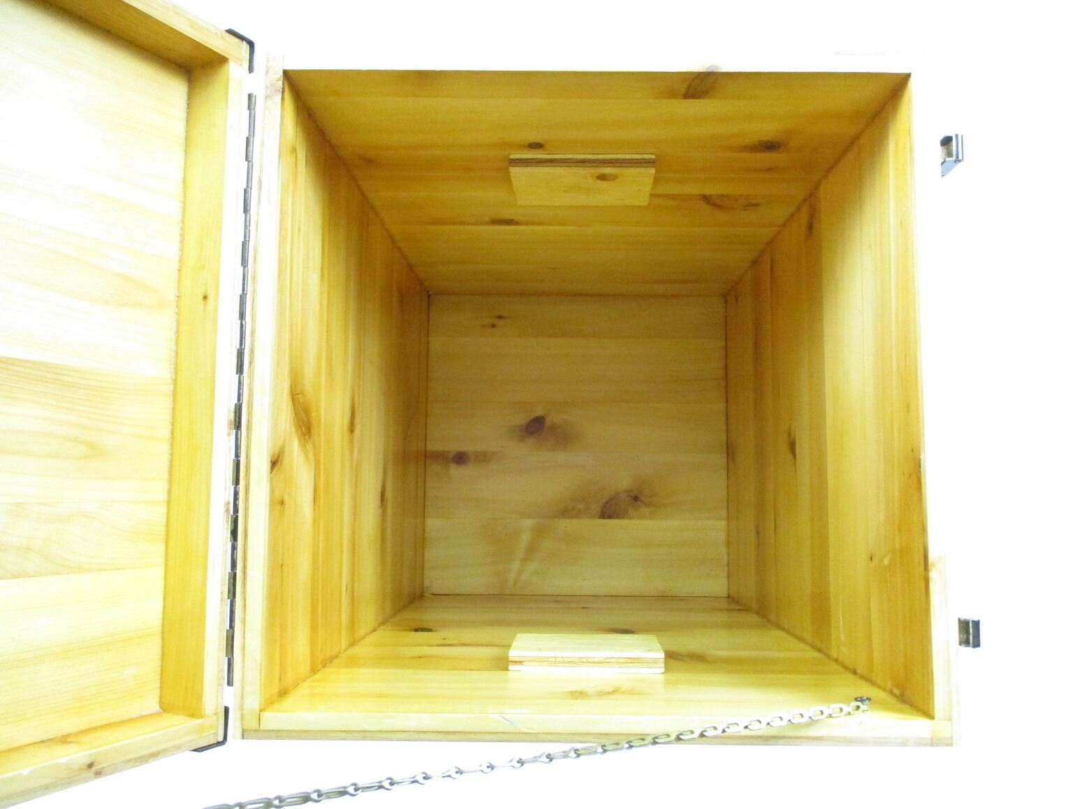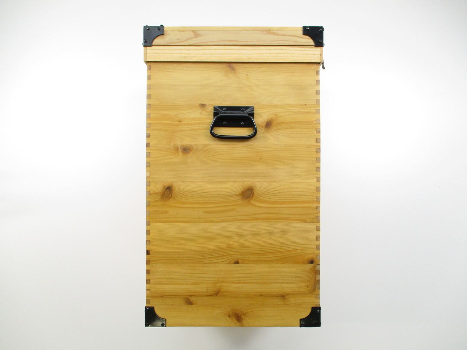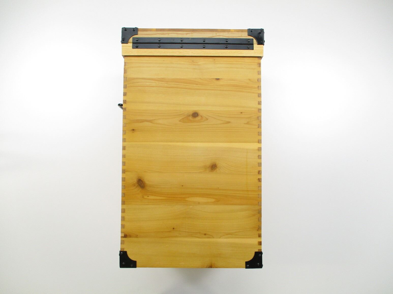 THIS BOX HAS DOVETAIL CORNERS, AND METAL REINFORCEMENTS