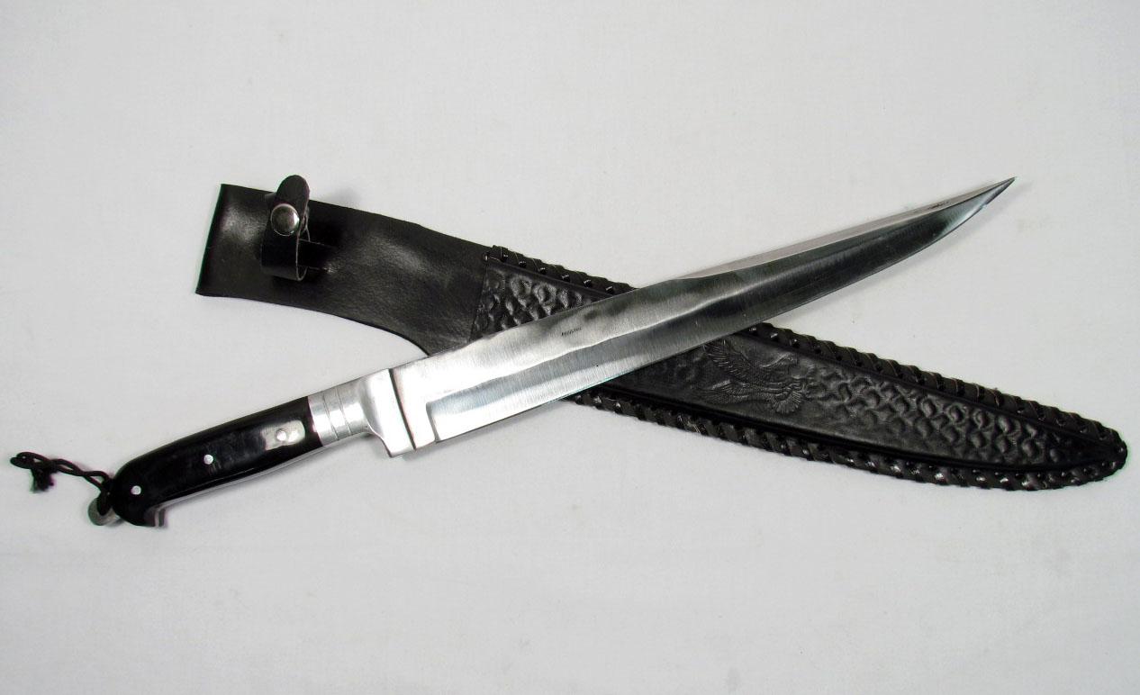 CUSTOM HANDMADE KYBER BOWIE KNIFE W/ LEATHER SHEATH - Approx. 19" long.