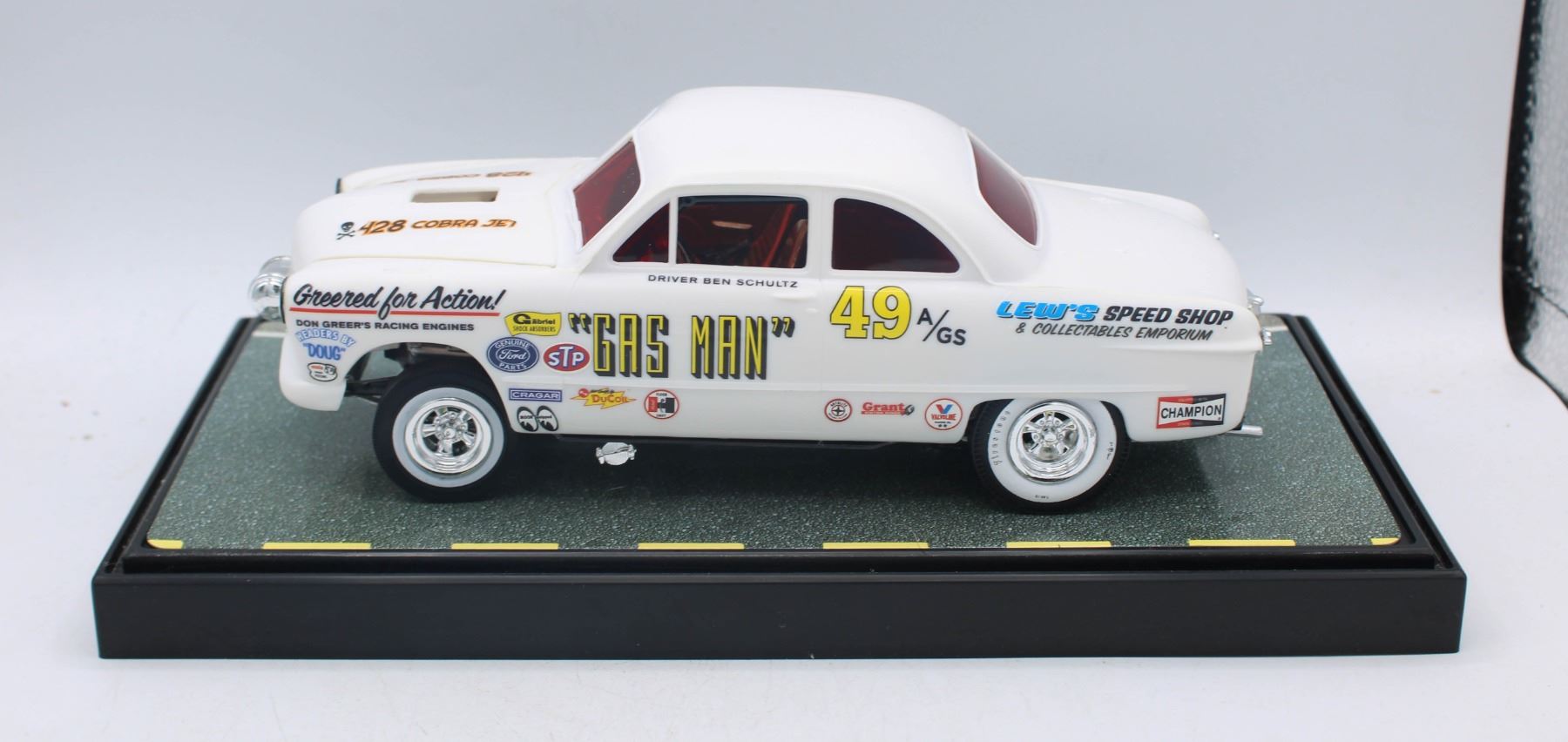 LEWS SPEED SHOP GAS MAN MODEL CAR IN DISPLAY CASE