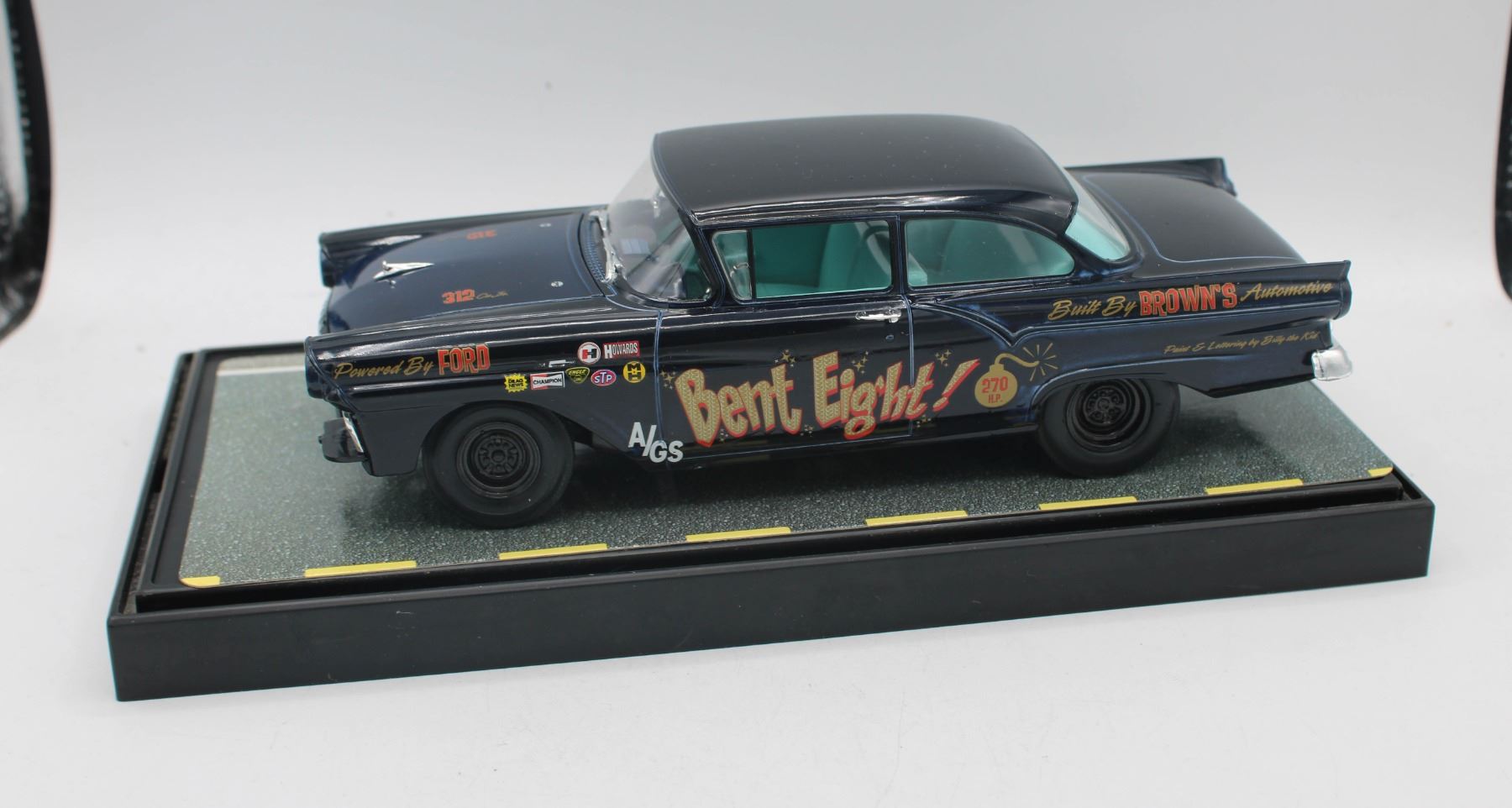 EIGHT MODEL CAR IN DISPLAY CASE