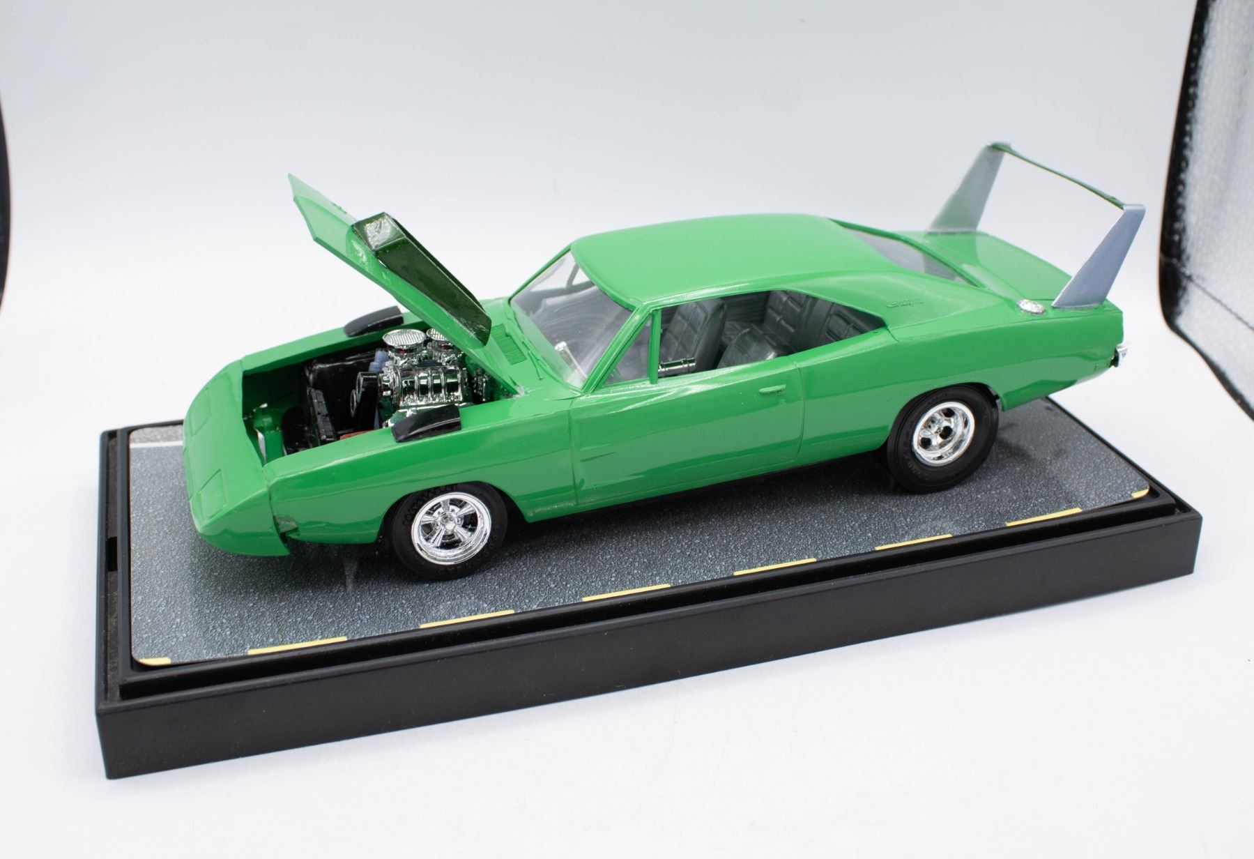 SPRING GREEN MODEL CAR IN DISPLAY CASE
