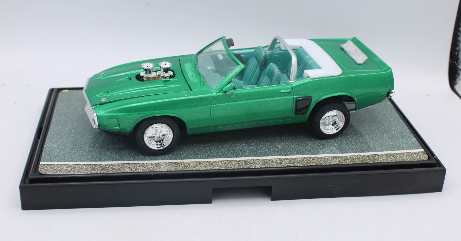 GREEN CONVERTIBLE MODEL CAR IN DISPLAY CASE