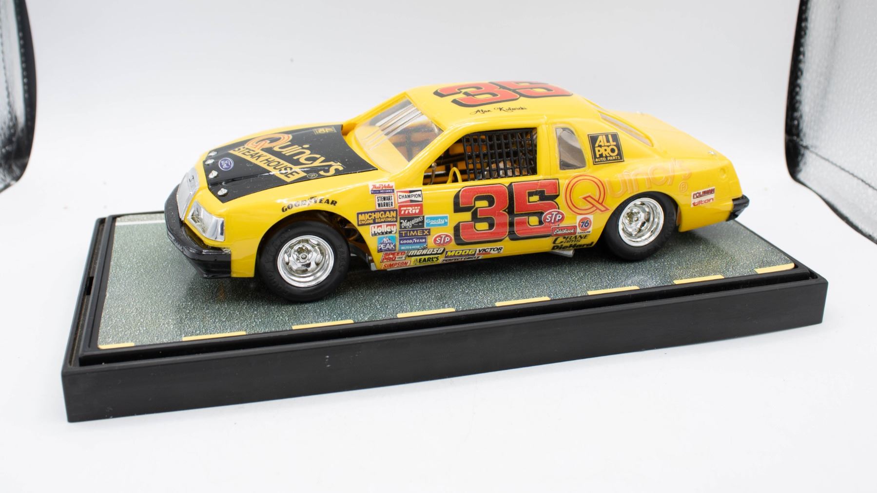 KULWICKI #35 QUINCY'S STEAKHOUSE MODEL RACE CAR IN DISPLAY CASE