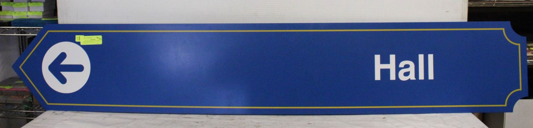 LETTERS EASILY APPLIED/REMOVED - "HALL WITH ARROW", BLUE WITH GOLD STRIPING (58.25"L X 10"H)