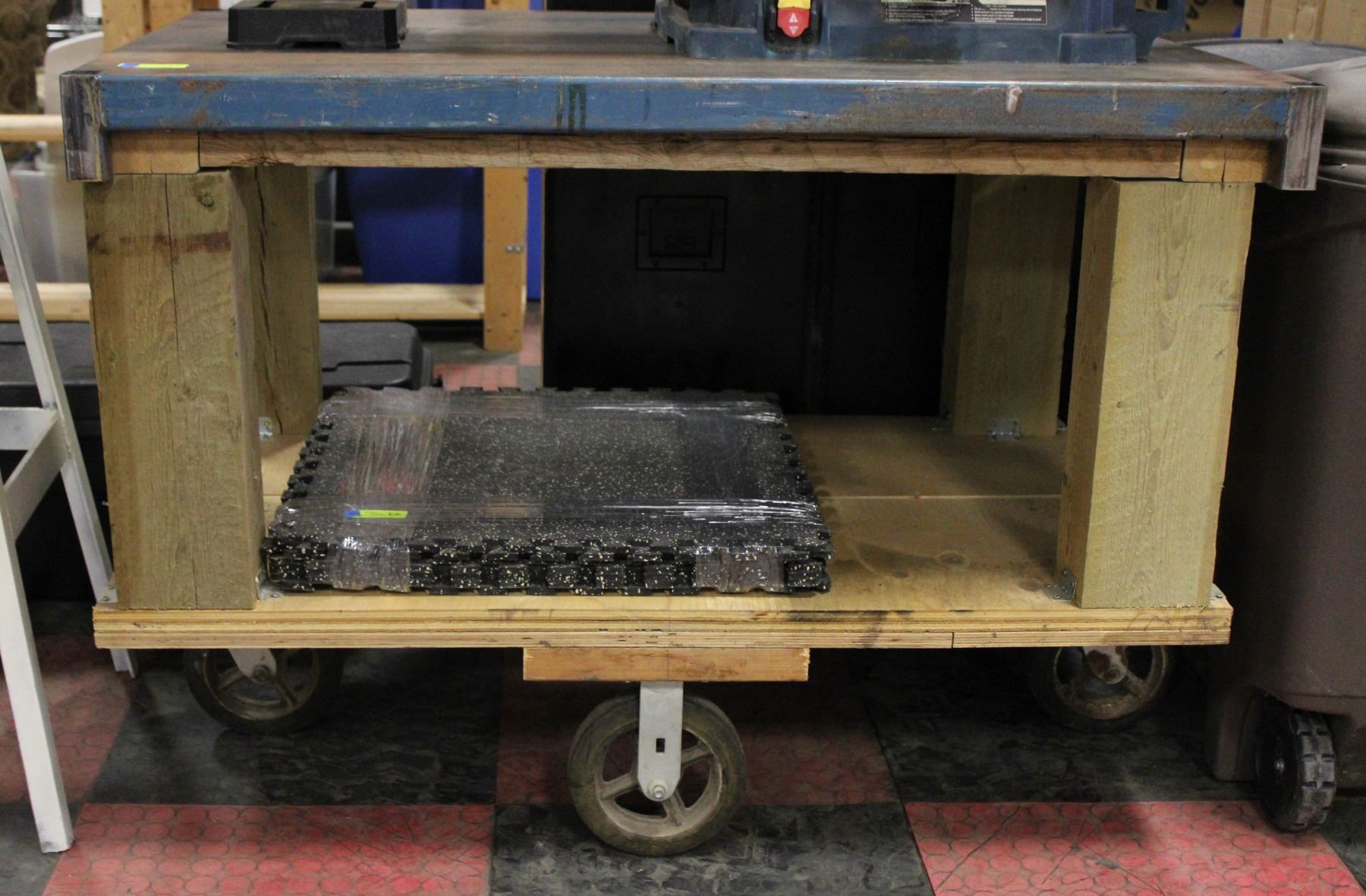 WORK-BENCH WITH FULL METAL TOP - 8"-INDUSTRIAL CASTORS, 4"X6" CONSTRUCTION WITH 1.75" THICK BOTTOM SHELF (48"L X 30"W X 35"H) **ALL ITEMS MUST BE REMOVED BY 5PM SATURDAY, MARCH 1ST 2025. ALL REMAINING ITEMS WILL BE SUBJECT TO A $6.00 PER DAY STORAGE CHARGE. ANY ITEMS REMAINING AFTER MONDAY, MARCH 17TH 2025 WILL BE CONSIDERED FORFEITED. NO REFUNDS WILL BE ISSUED FOR FORFEITED ITEMS. TO SCHEDULE A PICK UP APPOINTMENT CLICK HERE