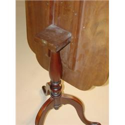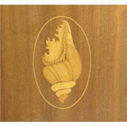 CUSTOM MADE QUEEN ANNE STYLE INLAID TILT-TOP TABLE. Inlaid conch shell decoration on top. Banded and line inlaid decoration on outside of top. Inlaid decoration on knees. Pad feet. 27.5" H, Top: 20" x 26.25"