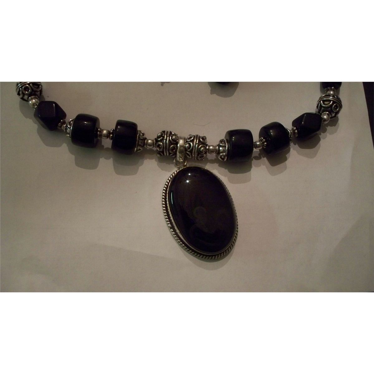 CUSTOM MADE STERLING SILVER ONYX NECKLACE WITH EARRINGS