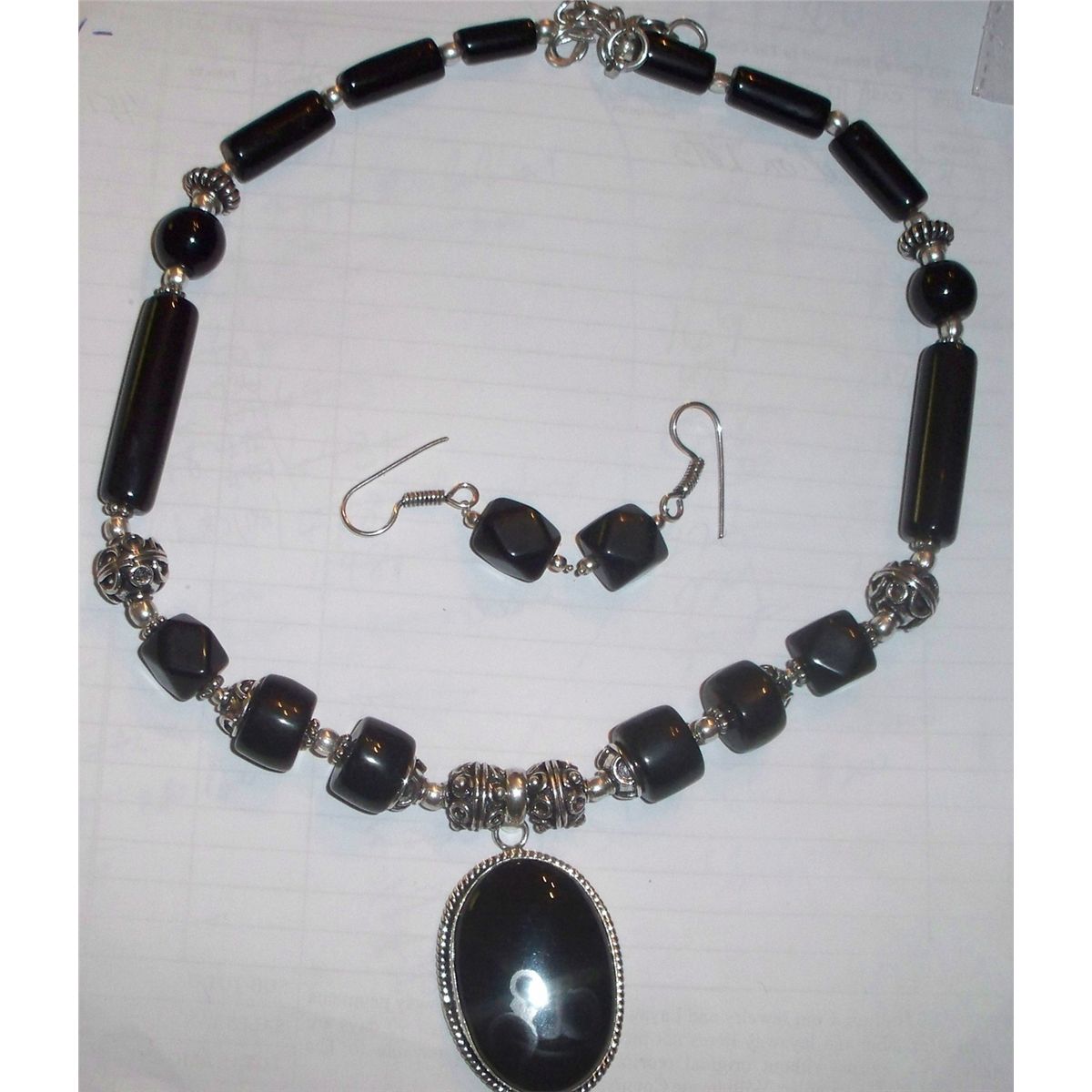 CUSTOM MADE STERLING SILVER ONYX NECKLACE WITH EARRINGS