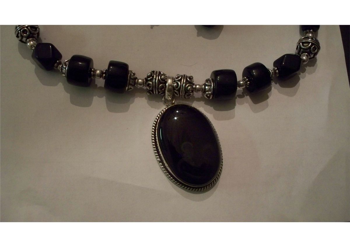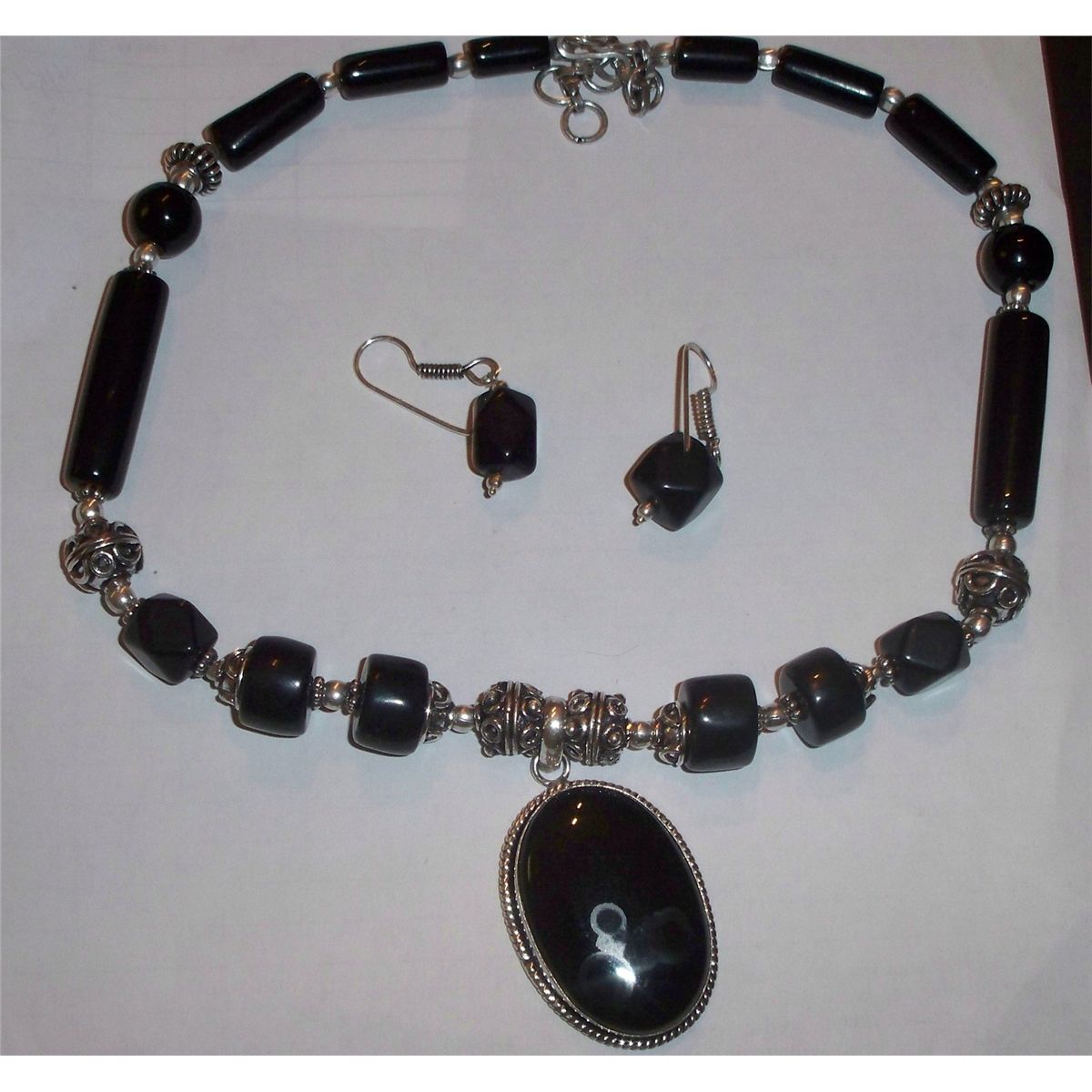 CUSTOM MADE STERLING SILVER ONYX NECKLACE WITH EARRINGS