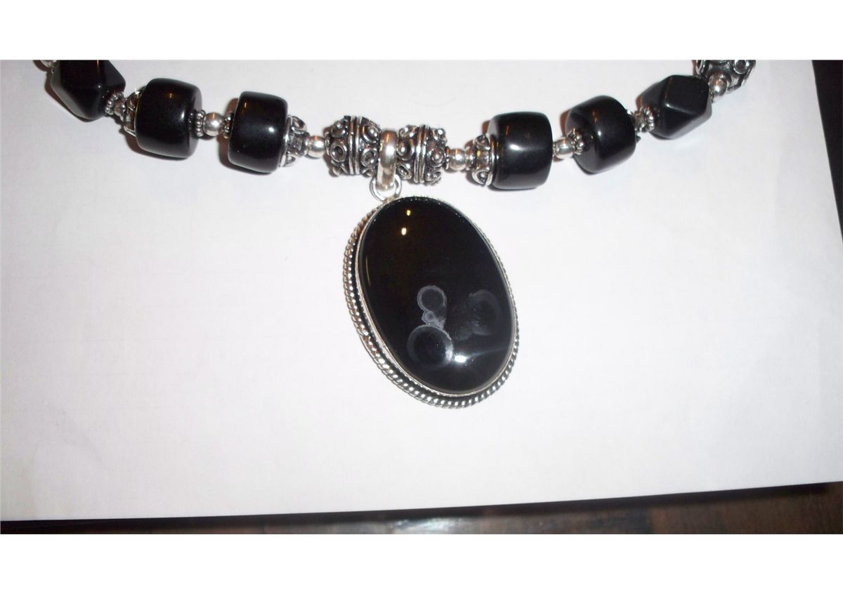 CUSTOM MADE STERLING SILVER ONYX NECKLACE WITH EARRINGS
