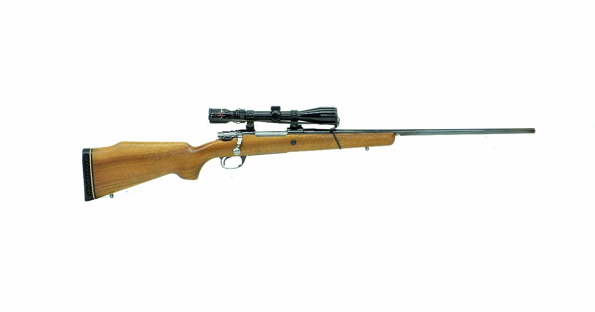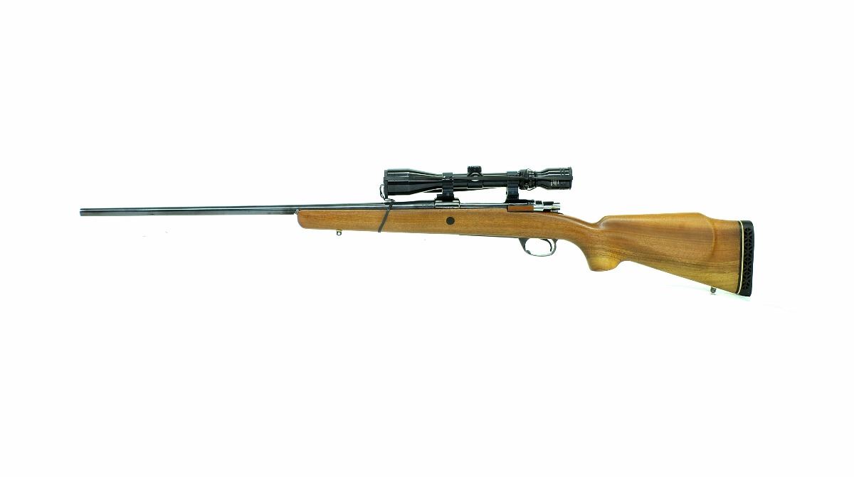 STOCK 279R-0094-G1, CUSTOM MAUSER MODEL MKX, CAL 30-06, BOLT ACTION, BARREL LENGTH: 25". RECOIL PAD, SLING STUDS, TASCO 3-9 X 40 SCOPE. CONDITION: 8/10. SN: R12XXX