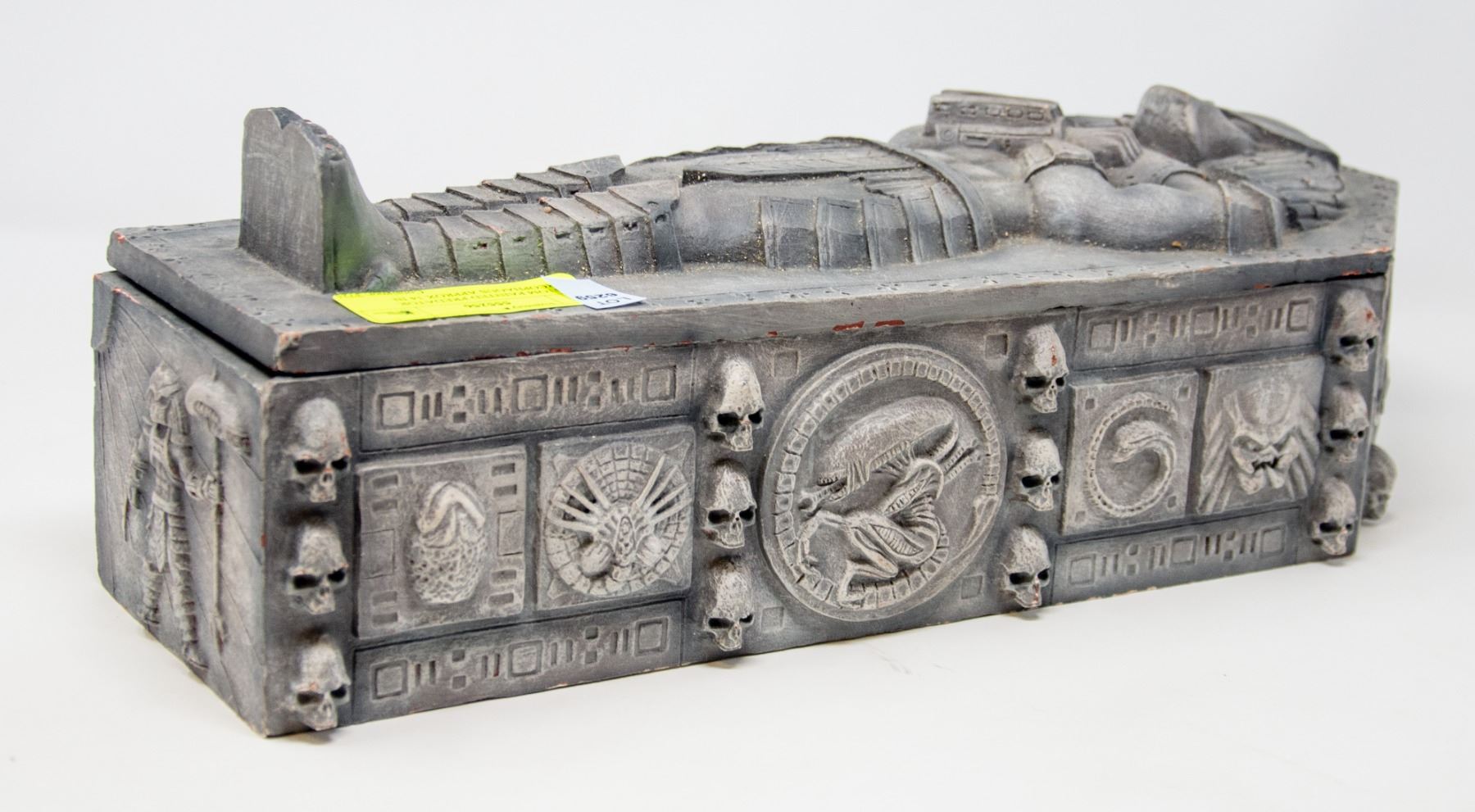 CUSTOM PAINTED PREDATOR SARCOPHAGUS APPROX 14 IN