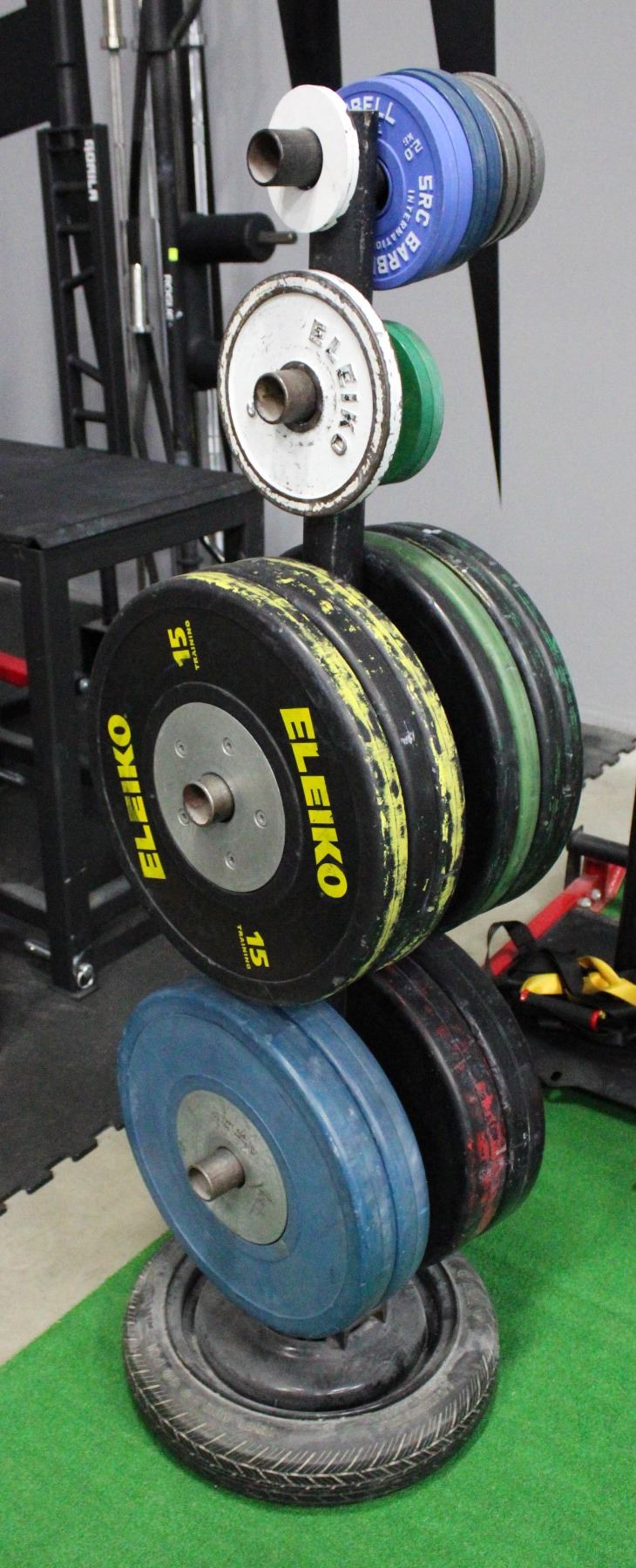 CUSTOM WEIGHT RACK W/ VARIOUS WEIGHT PLATES