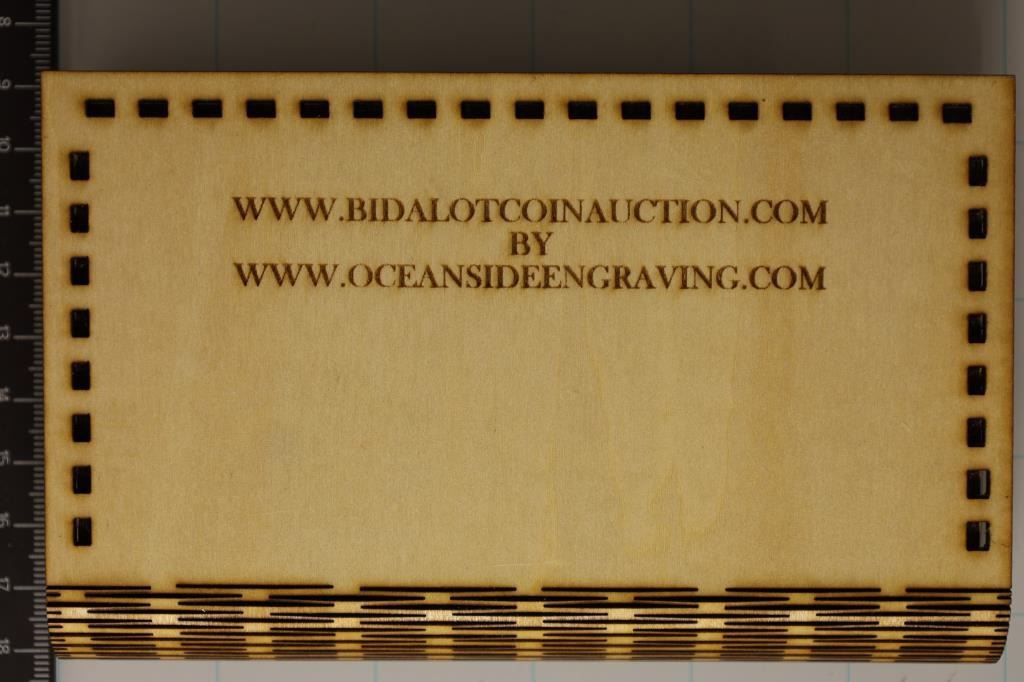 5 3/4" X 3 1/2" X 1''. PICTURE OF A 1921 MORGAN SILVER DOLLAR ENGRAVED ON THE TOP