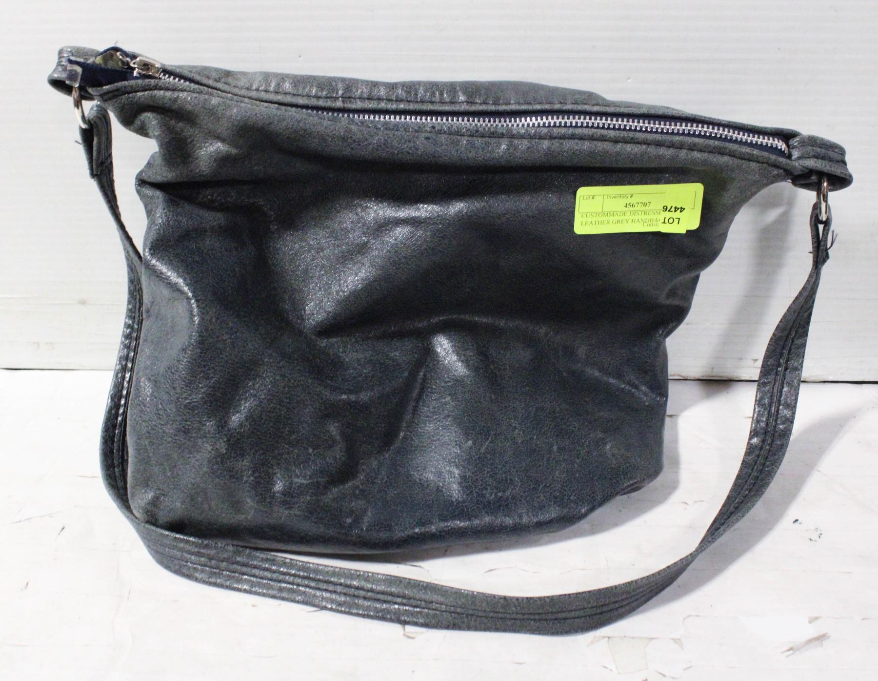 CUSTOMMADE DISTRESSED LEATHER GREY HANDBAG