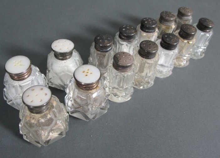 -including 10 sterling silver tops -stamped 925 (height: 1 3/4 in.) & 4 sterling silver & mother of pearl tops (height: 1 5/8 in.).