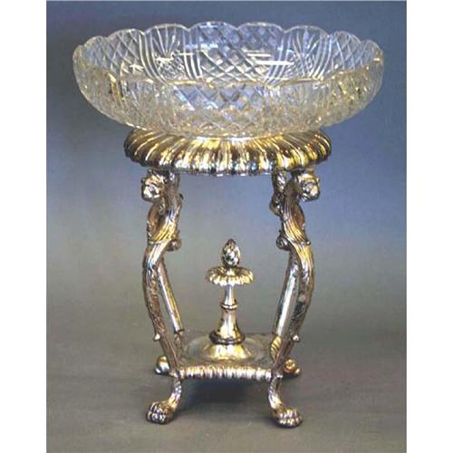 CUT GLASS BOWL AND SILVER CENTER STAND with lions height: 15"
