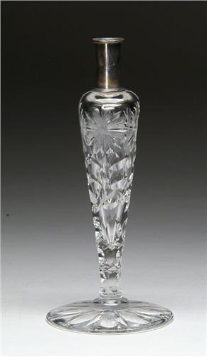 CUT GLASS LAMP BASE. Cut in floral and leaf pattern. SIZE: 10-1/2 in. t. CONDITION: Very good to excellent. Estate of Edwin Schiebel Sr. 5-60161