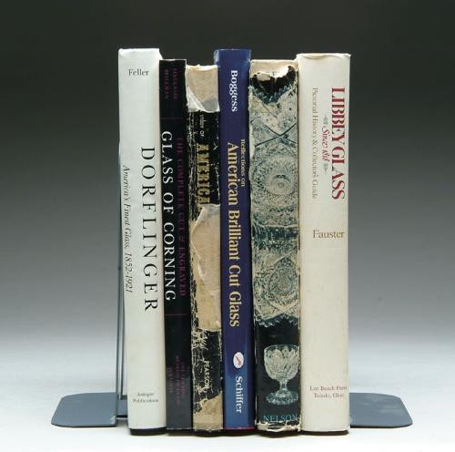 CUT GLASS REFERENCE BOOKS. This fine lot consists of six cut glass reference books including "Dorflinger" by Feller, "Libbey Glass" by Fauster, "American Cut and Engraved Glass" by Revi, "Reflections on American Brilliant Cut Glass" by Boggess, "A Study of American Cut Glass Collections" by Pearson and "The Complete Cut and Engraved Glass of Corning". CONDITION: Books have been used, but overall good. Estate of Edwin Schiebel Sr. 5-60239