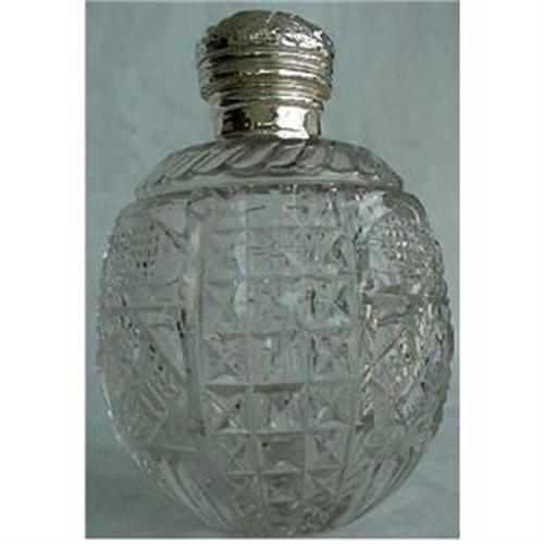 <table width="100%" border="0" cellspacing="0" cellpadding="4"><tr><td><em> </em></td></tr><tr> <td width="100%"> 1896 Birmingham, England: cut glass and sterling silver lidded cologne or perfume bottle. 5 1/4" high. Round body made of deeply faceted cut glass in vrious patterns. The neck is silver overlaid and the screw-on lid is silver with scrolling repousse patterns and engraved cap. Lid is marked in two places for Birmingham 1896. Some of the lower marks are worn, but the others are quite clear. HW ?N & ?L is the maker. The bottle and silver are in very good condition: negligible minute dings to the silver. </td></tr><tr> <td> </td></tr><tr> <td>Reference #: 780a</td></tr><tr><td>Condition:See Description</td></tr><tr><td>Year:See Description</td></tr><tr><td>Title:CUT GLASS & ST SILVER PERFUME COLOGNE BOTTLE</td></tr><tr><td>Location:Boca Raton</td></tr></table>